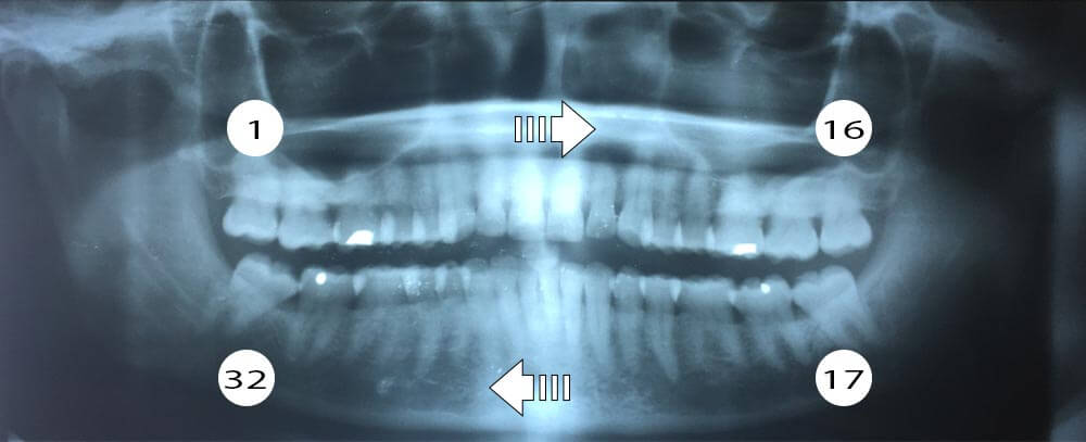 Periapical x-rays are labeled with tooth numbers. Clarify with staff if your x-rays are not labeled.